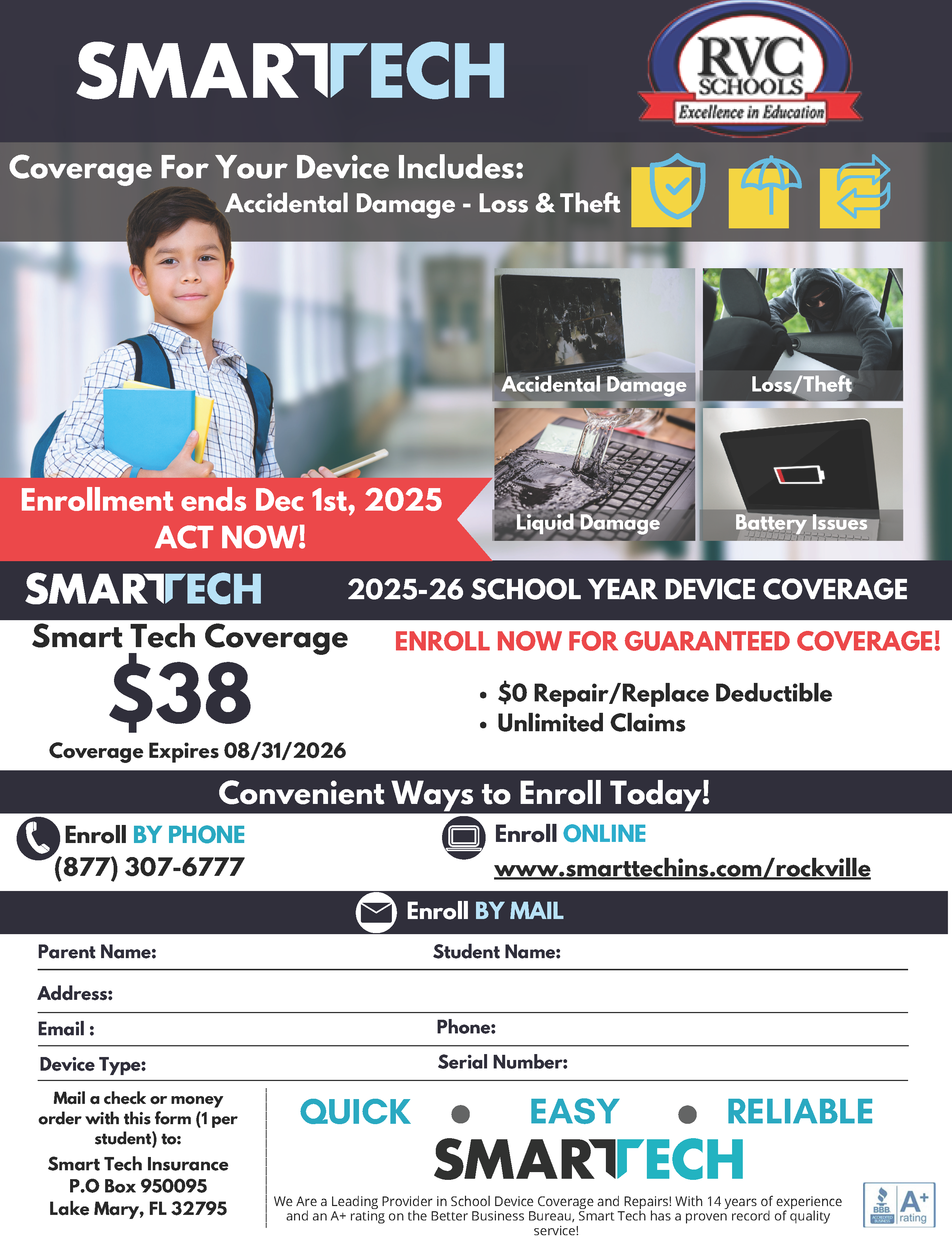 Due to a high volume of calls from parents requesting additional time to complete their device coverage enrollment, Smart Tech has extended the deadline to December 8th!